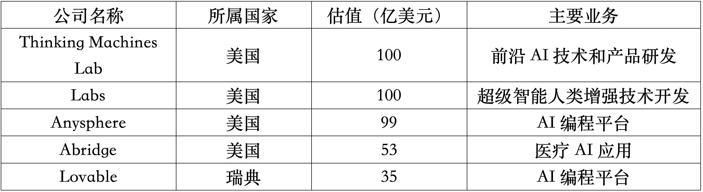 表 1:2025年新晋的前五AI独角兽 资料来源:Pitchbook